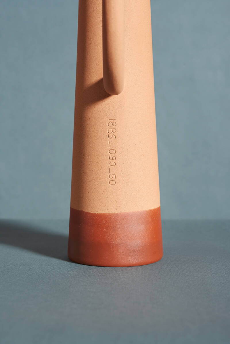 "The coloured bodies and the function represent the quality of the Nijmegen clay. Using different firing temperatures, the carafe shows the incredible variation of colours of the clay. The terra sigillata applied on the outside creates a protective layer."