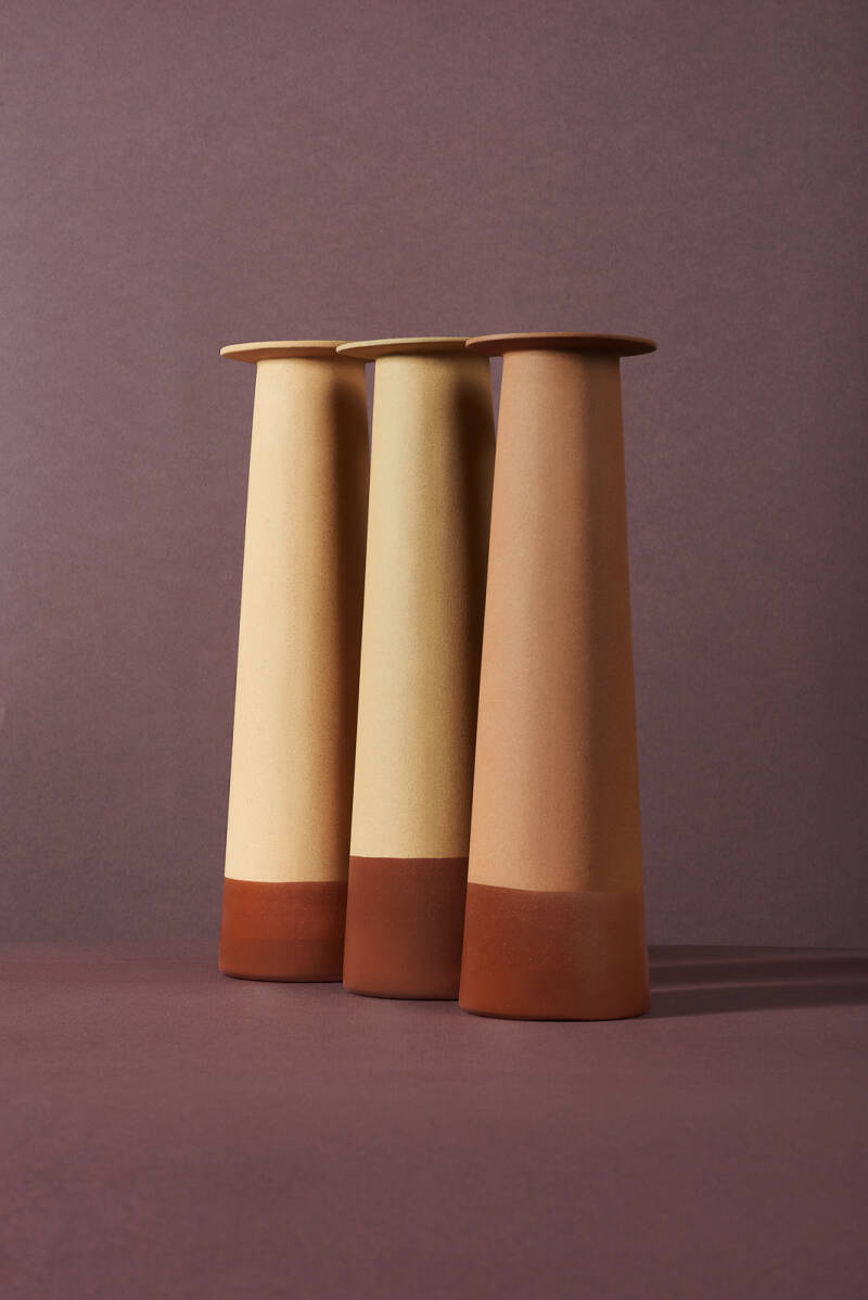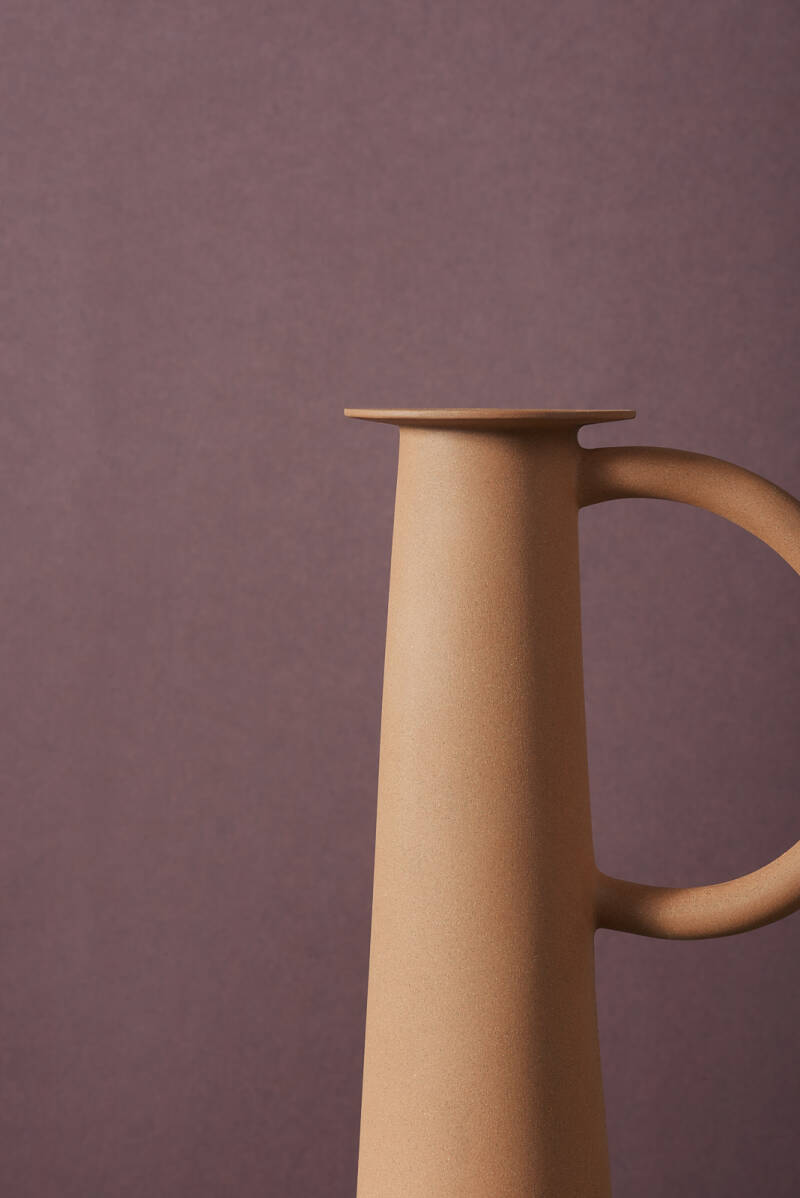 "The coloured bodies and the function represent the quality of the Nijmegen clay. Using different firing temperatures, the carafe shows the incredible variation of colours of the clay. The terra sigillata applied on the outside creates a protective layer."