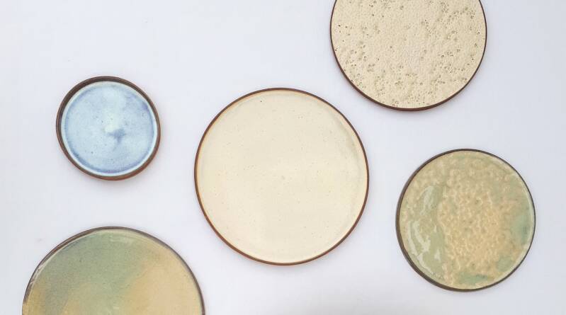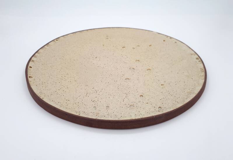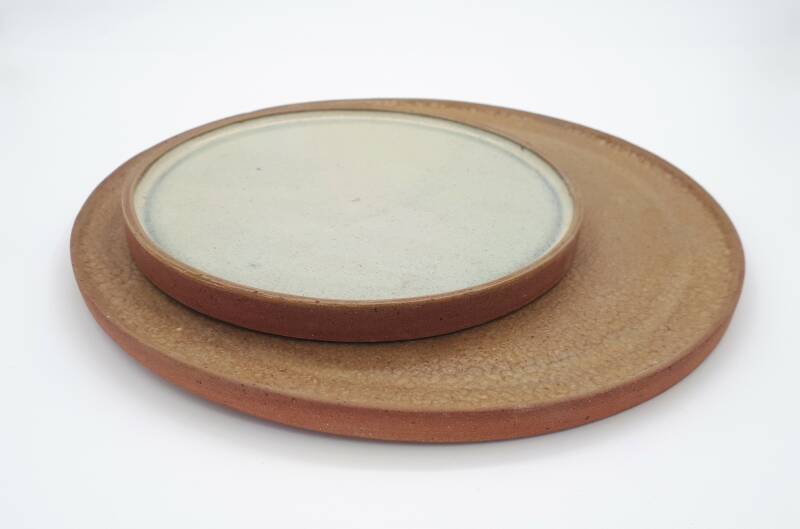 Gedraaid op de draaischijf, aan één zijde geglazuurd. De plateaus hebben een opstaande rand.